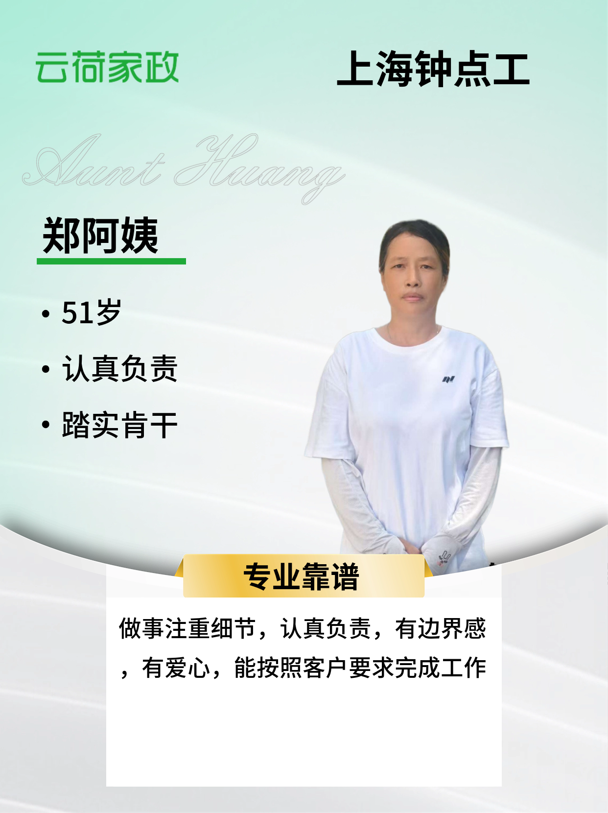 本人做事注重细节,认真负责,有边界感,有爱心,能按照客户要求完成工作。