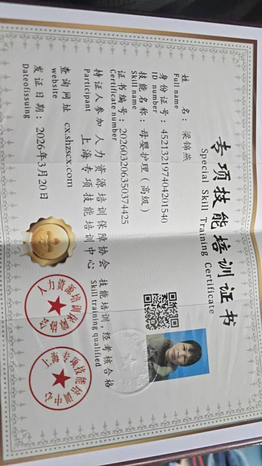 上海育儿嫂:梁阿姨