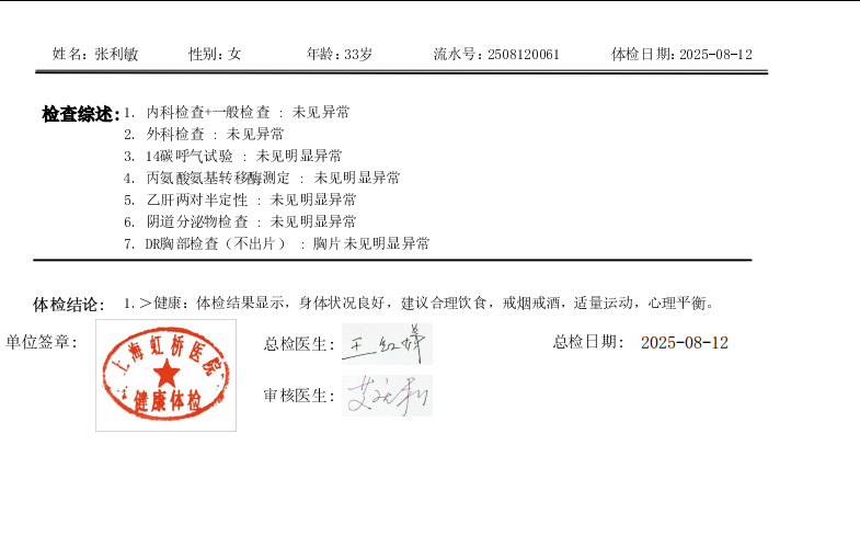 姓名 : 张利敏