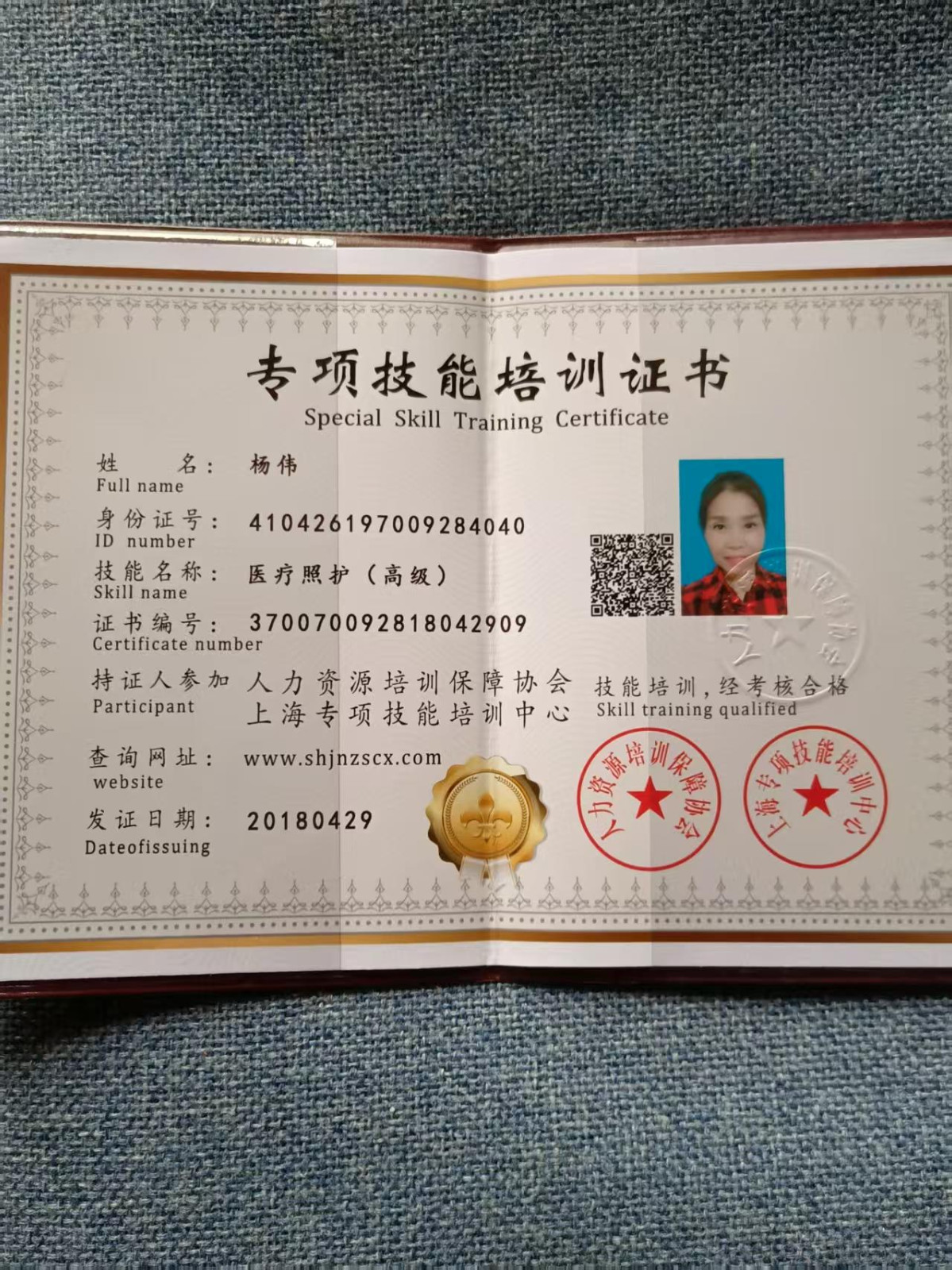 姓名:杨伟 年龄: 70年生 身高:162厘米 体重:60公斤 学历:初中 籍贯:河南 证书::身份证,健康证,护工证 工作经历: 2018年1月-2021年底在广东各大三甲医院做一对一的专职陪护。打鼻饲,翻身扣背拍痰,骨折,癌症化疗,术后的护理都会做的。 2022年2月-2023年11月在青浦住家照顾男老人150斤半身瘫痪全护理,每天都要轮椅转换,附带做饭保洁,家属送老人去护理院,我继续接下一单。 2024年7月份有来上海在医院里做短单至于现在