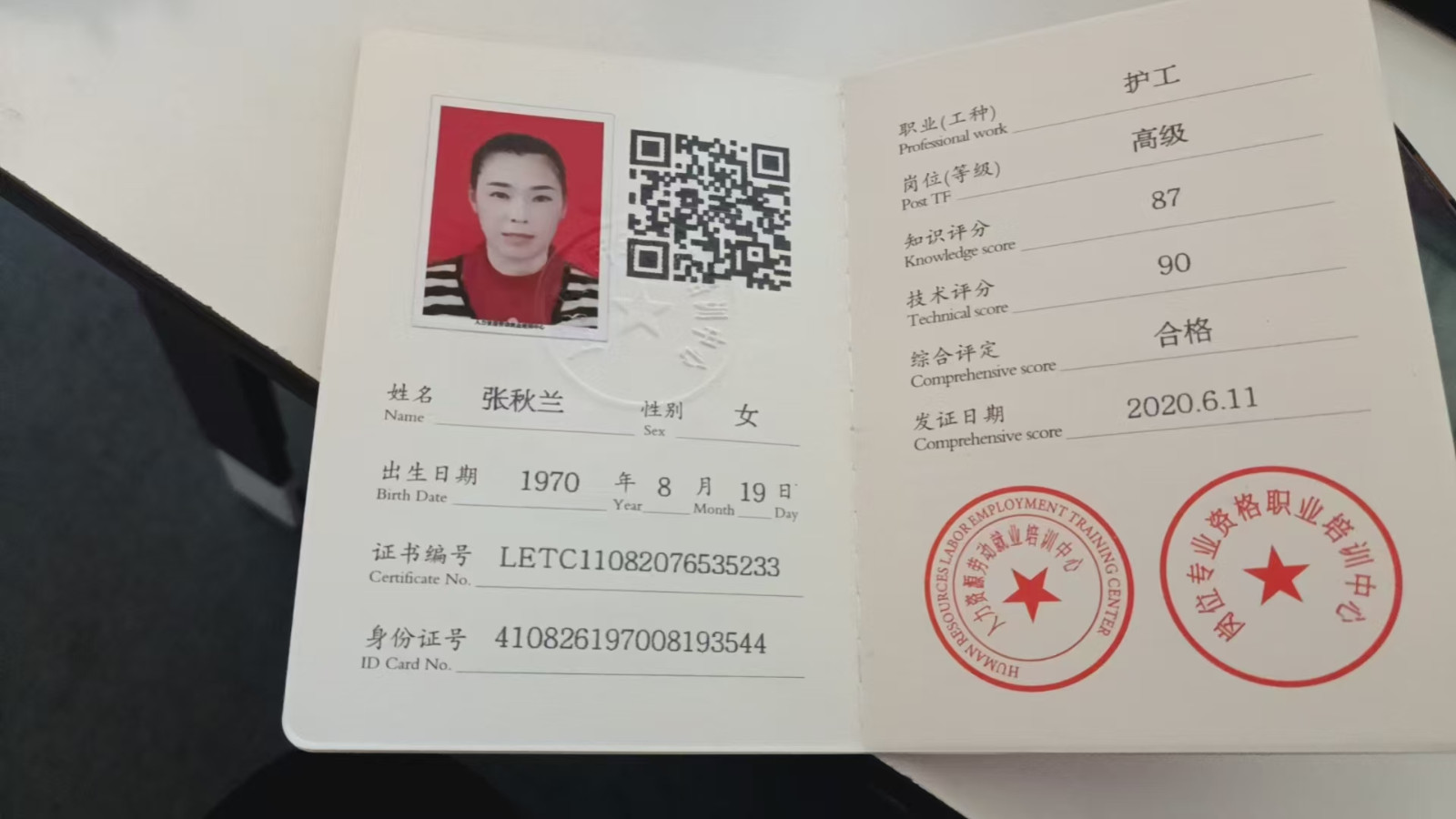 证书: 高级护理证 上岗证 健康证包括:乙肝五项、幽门螺旋杆菌检查,核酸检测,艾滋病毒,梅毒,都有体检合格报告。