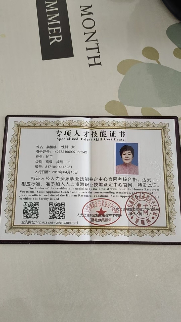 本人2018年5月份-——2019年2月份在亦庄养老院上班,打流食,扣背,吸痰,轮椅转换