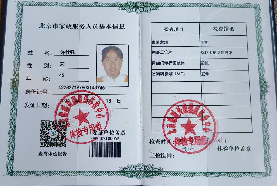 温馨提示:云荷家政平台发布的简历信息由劳动者本人提供,云荷家政平台对信息的真实性、及时性、正确性均不做任何形式保证。