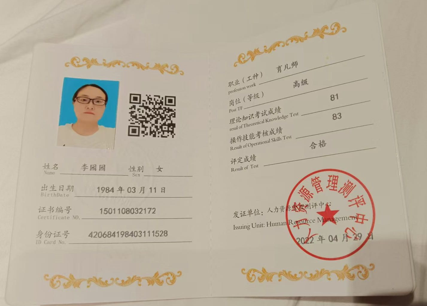 证书:厨师证,擅长做饭,在酒店厨房工作3年。