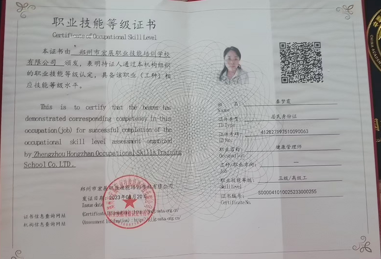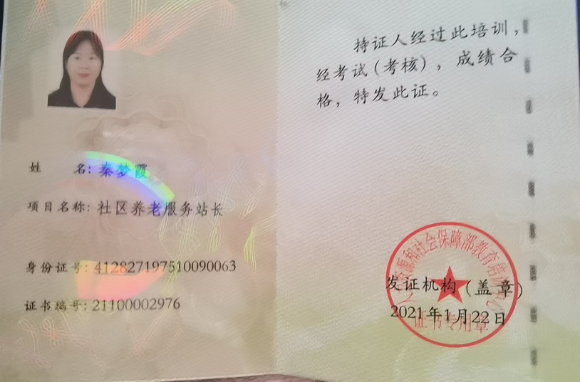 持有证书:护理证,健康管理证,家政师证。