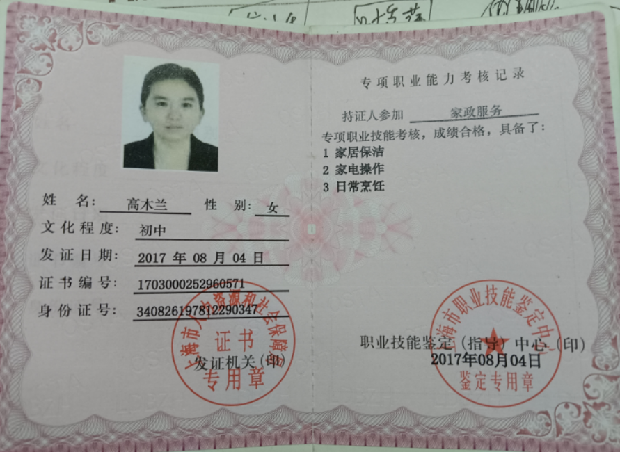 姨性格开朗 有耐心 责任心强 素质高,性格热情开朗 随和 好相处 。工作认真负责、踏实、细致有耐心,有上进心、动手能力强,勤于思考与总结,能吃苦耐劳,适应能力强,易与人相处 好交流家务眼里有活,对孩子有耐心,安全第一,做菜不错