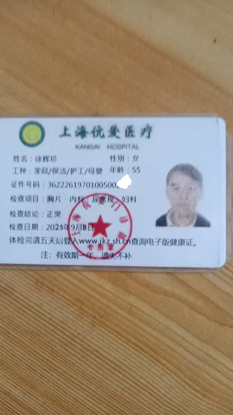 2023年上半年 在老家照顾卧床老人半年,2023年下半年~2024年6月在上海虹口区赤峰路404弄…照顾不自理老人,2024年7月∽2025年6月在上海市杨浦区长阳路202弄1号…照顾自理老人,7月我家中有事辞工返乡至今…