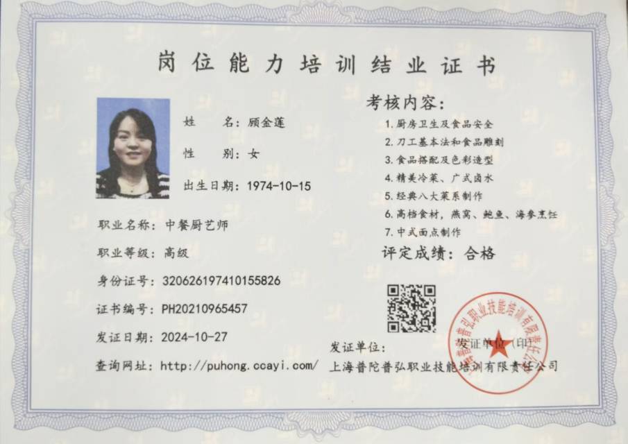 3、2024~2025年,在上海兴国路万公馆做专厨