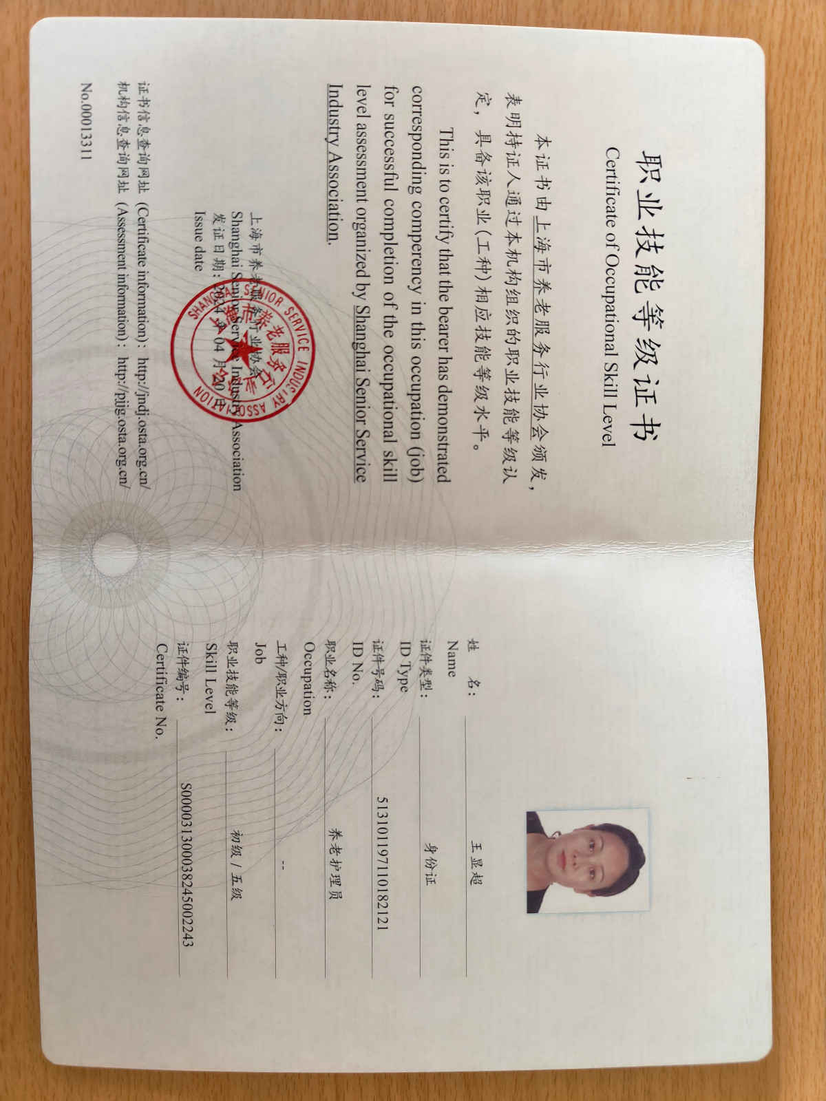 职业证书:初级养老护理员五级