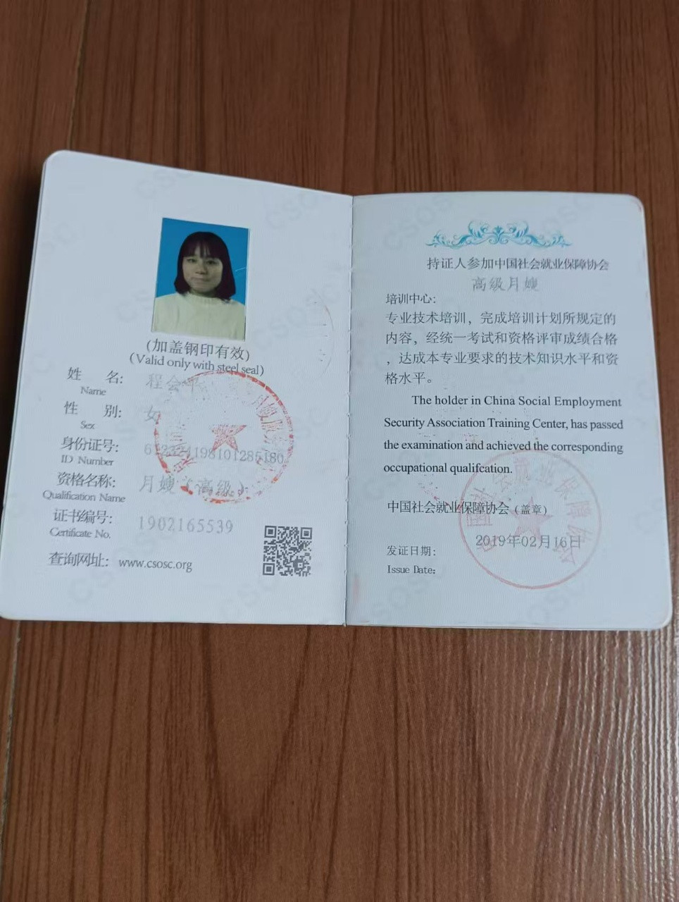 技能证书:育婴师,早教证,营养师证,月嫂证,驾驶证