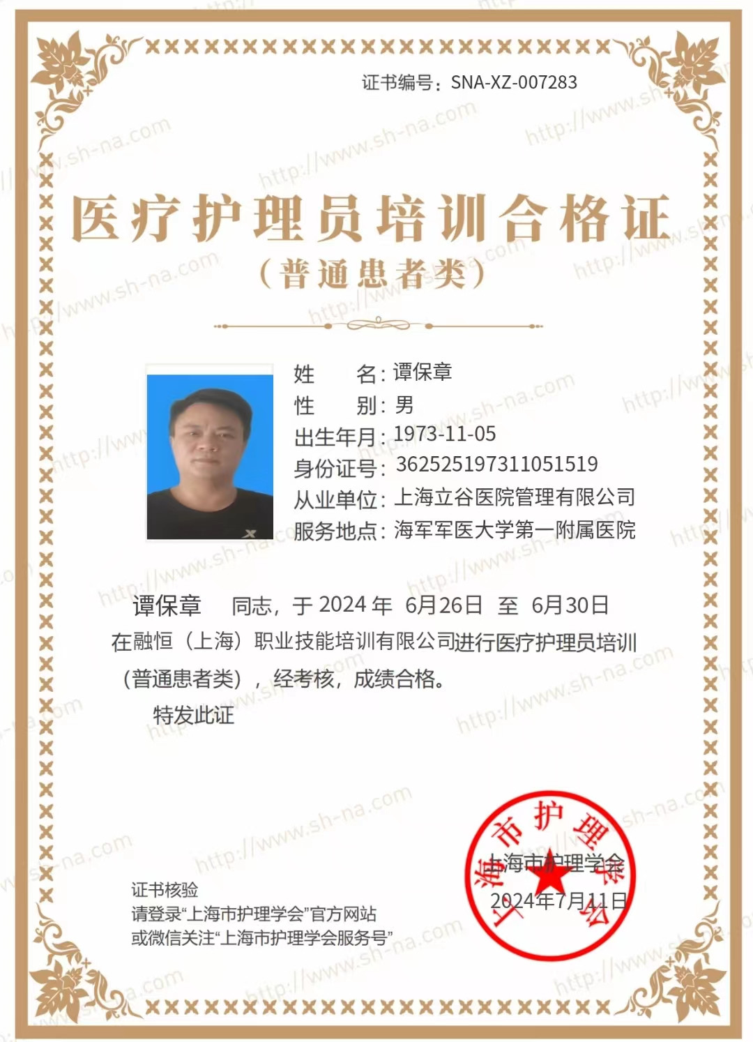 上海医院护工:谭护工