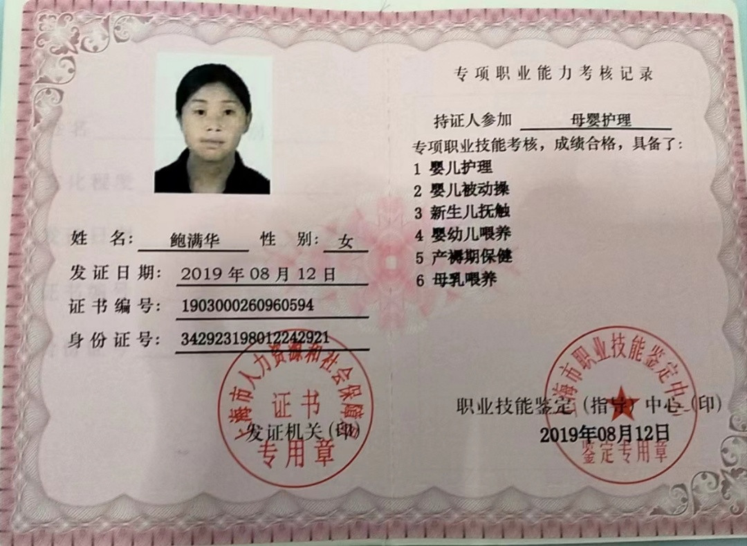 5、2019年 5 月—2022 年12月,在新华路,浙江人家里, 母女两人,主带成年自闭症女孩,附带烧饭保洁