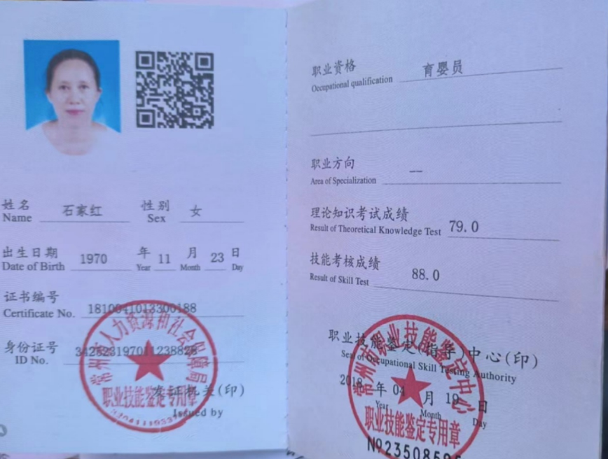 姓名:石家红 籍贯:江苏常州 年龄:53岁 学历:高中毕业 身高:1米56 体重:99斤 工作经历: 2016年--2019年在江苏溧阳一直做住家家政保姆,主要烧饭保洁,家务整理收纳,辅助带3岁大宝,陪护老人等。 2019年去上海做长护险半年, 2020年疫情长护′险结束,疫情过后2021年去上海做家政住家保姆,辅助带4岁大宝一年时间,后因家中母亲摔跤回到老家照顾, 2023年至今在杭州主做烧饭保洁收纳整理,辅助带2岁大宝。到现在下户