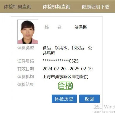 相关证件:身份证 健康证,体检证