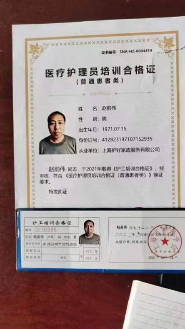 证件: 护工证,