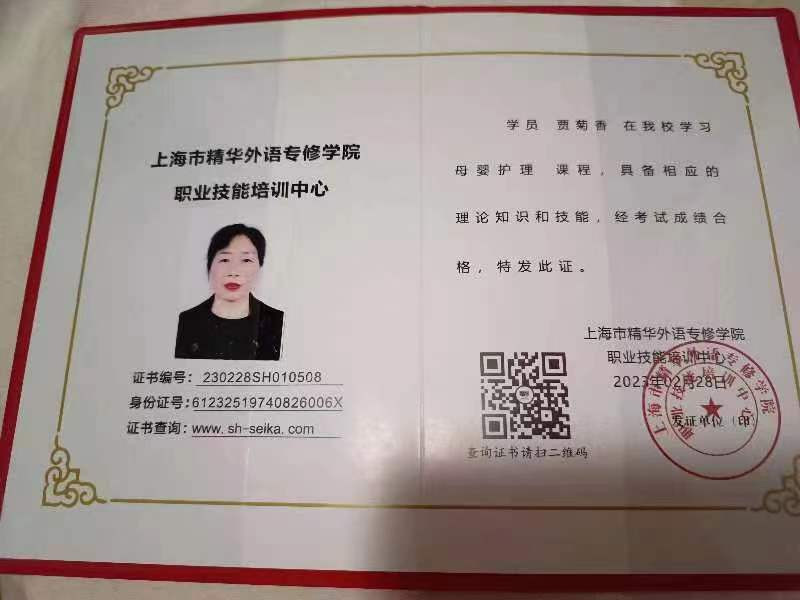 2018.10到2019年11.在鞍山新村同济公寓,4口之家,主带女宝宝,3个月带起,负责宝宝一切生活护理。
