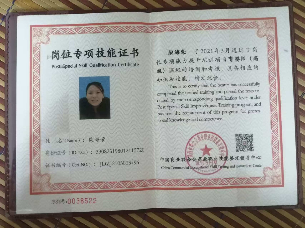 证件:身份证,健康证,育婴师证,早教证,驾驶证