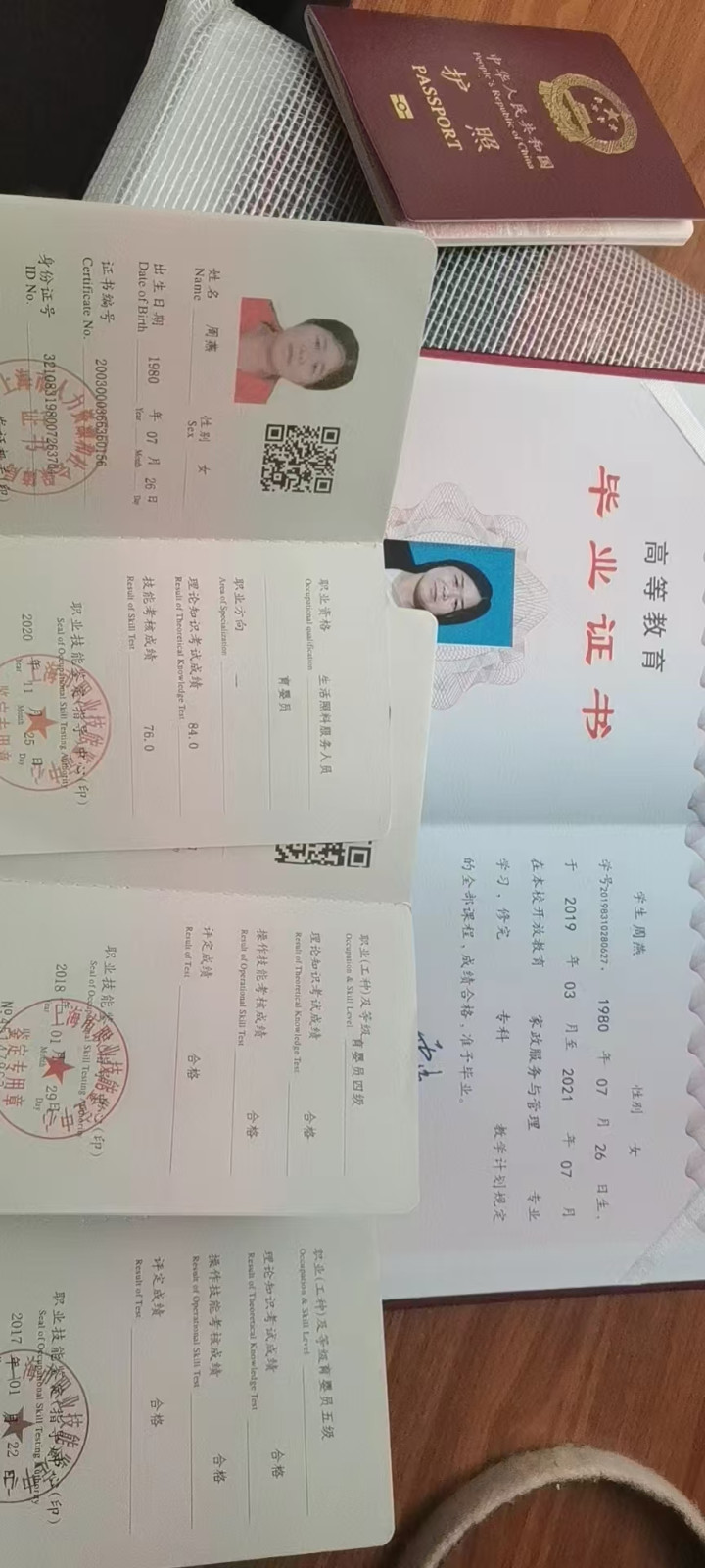 工作经历:2005年开始浦东上海家庭烧饭保洁,附带孩子。