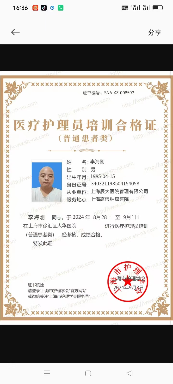 个人简介 姓名:李海刚 性别:男 籍贯:安徽 年龄:40 身高:165 体重:135 学历:初中 技能证书:高级 工作经历: 擅长技能:全护理, 个人性格:稳,心细