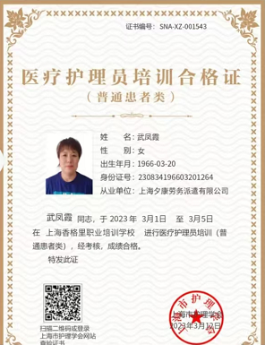 培训认证:有护工证书