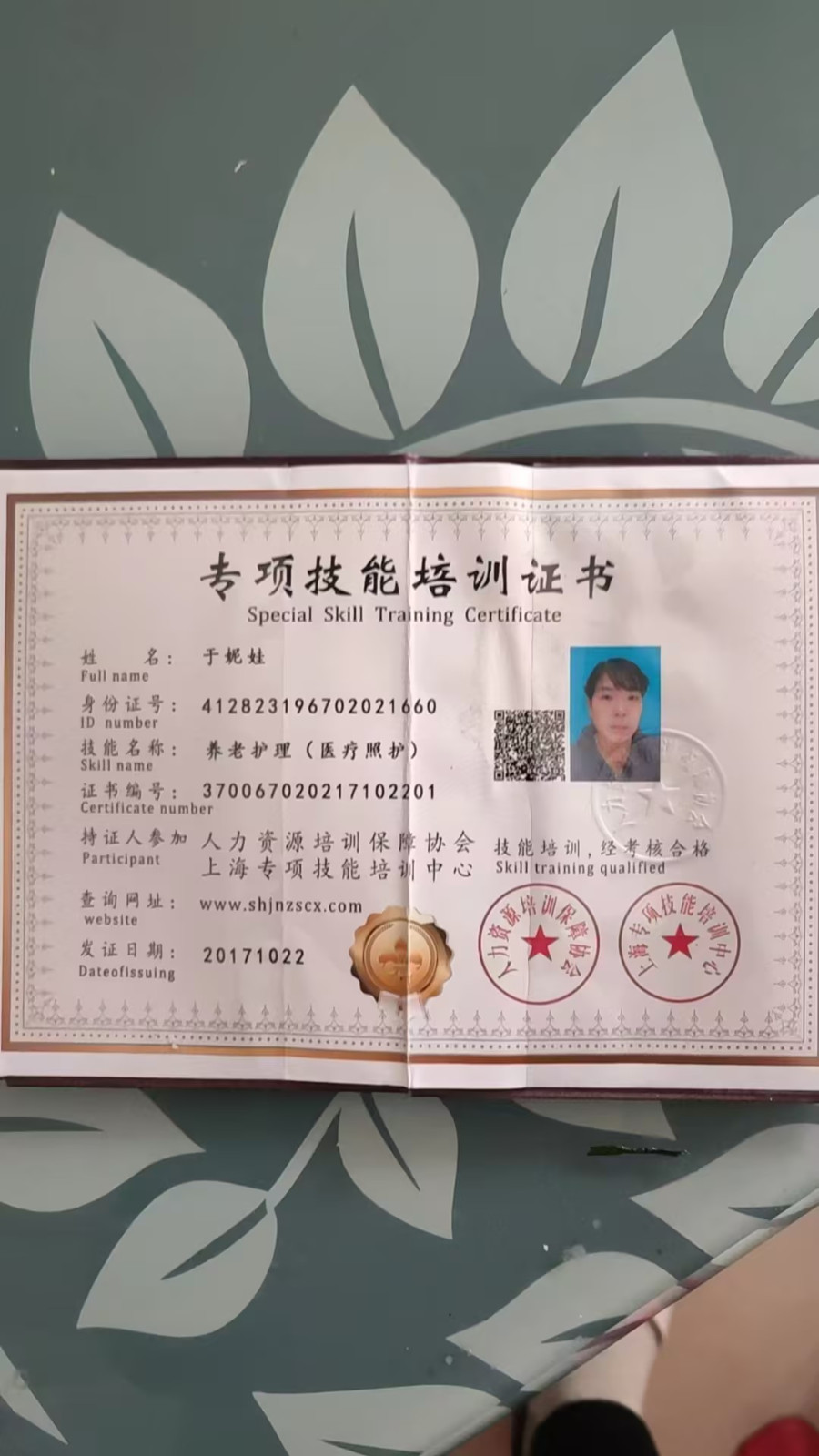 姓名:于妮娃