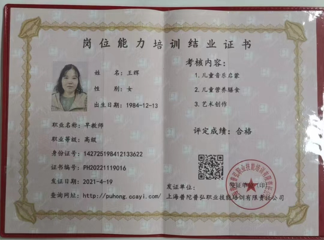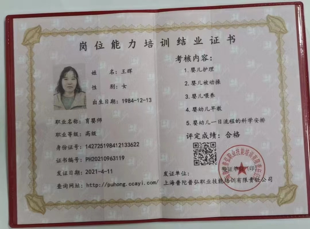 证书 : 育婴师 早教师证