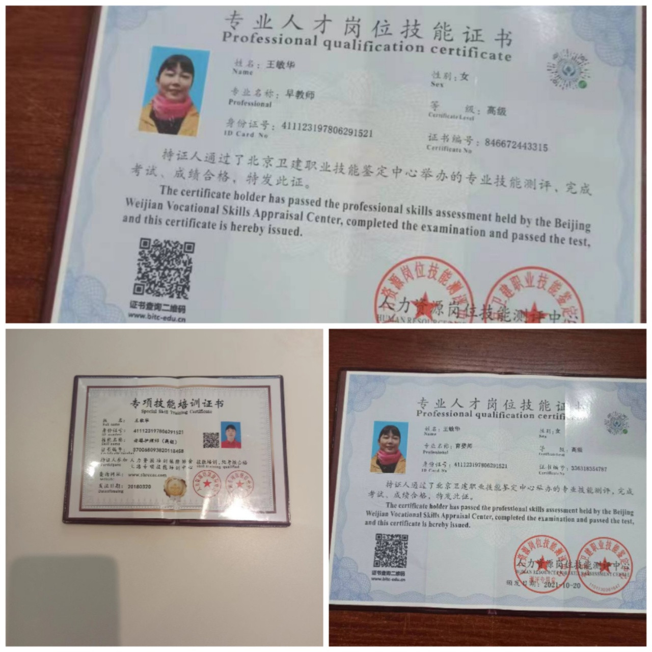证书:母婴护理师证,早教证,育婴师证。