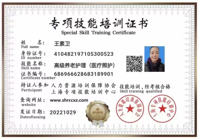 2017年一2019年,在徐汇区,住家照顾一位91岁全护理女老人,喂饭,洗头,洗澡等。烧饭,保洁等。
