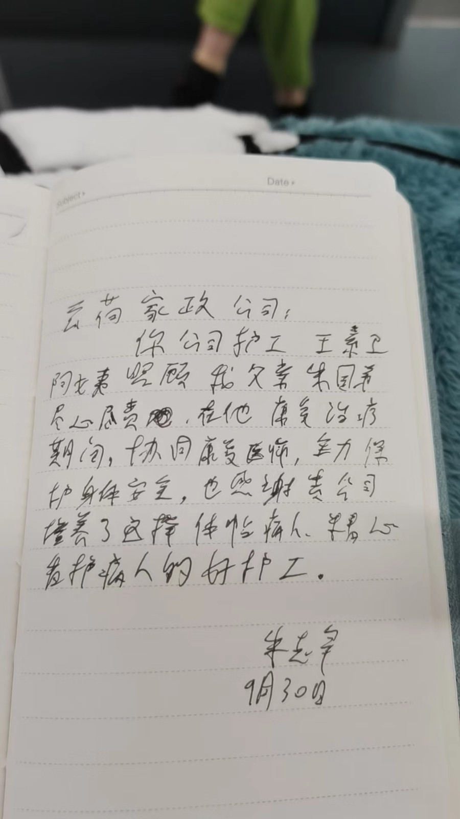 在新华医院做护工三个月,主要照顾医院病人,给他们擦身,喂饭,换纸尿裤,护理老人,观察他们的身体状况,给他们按摩,沟通