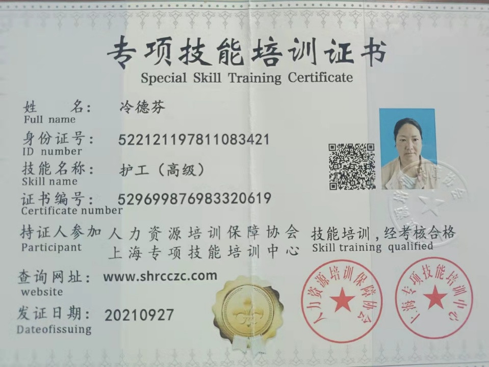 相关技能:2021至今,在医院和住家家庭照顾老人或病人的护理工作