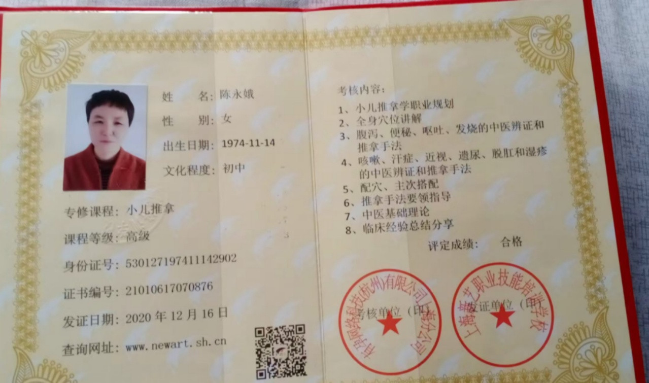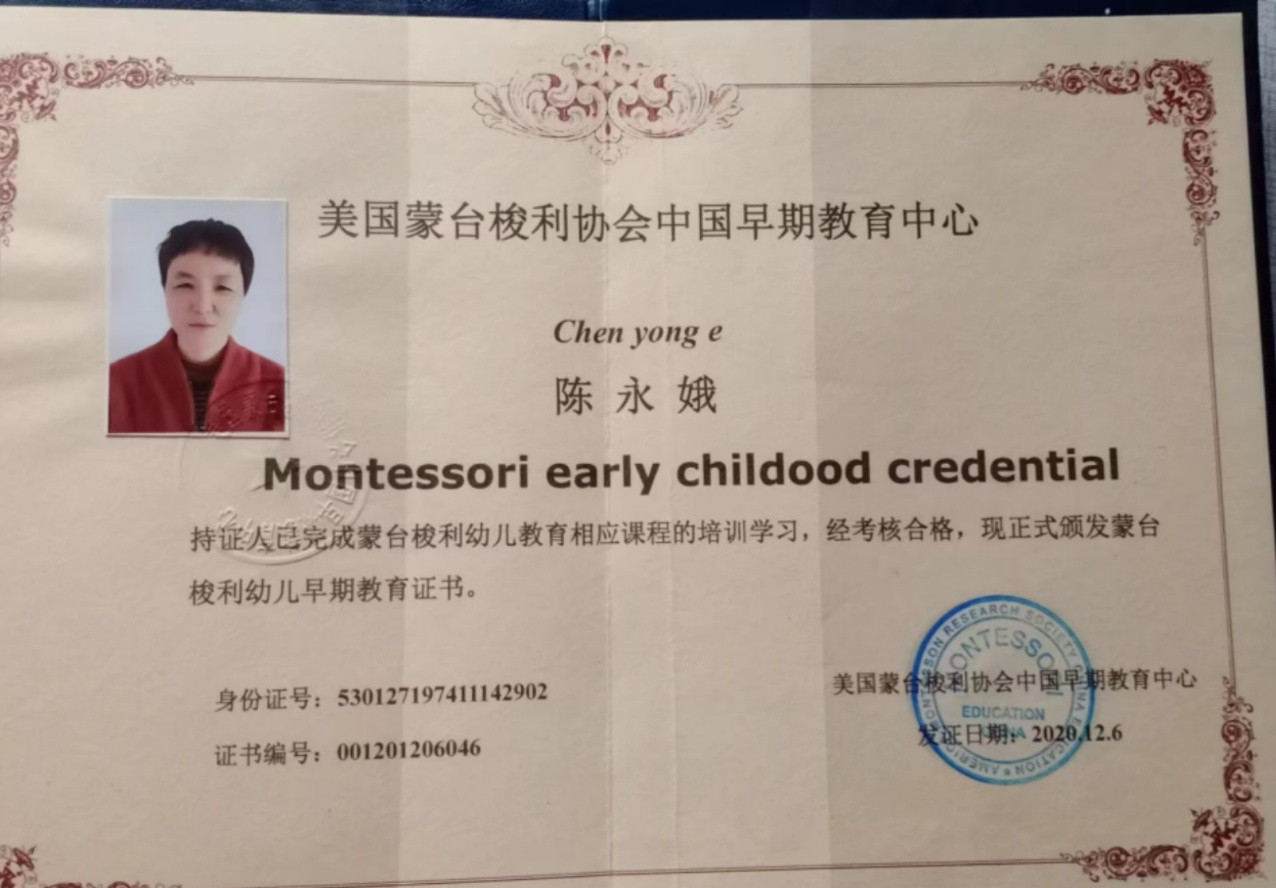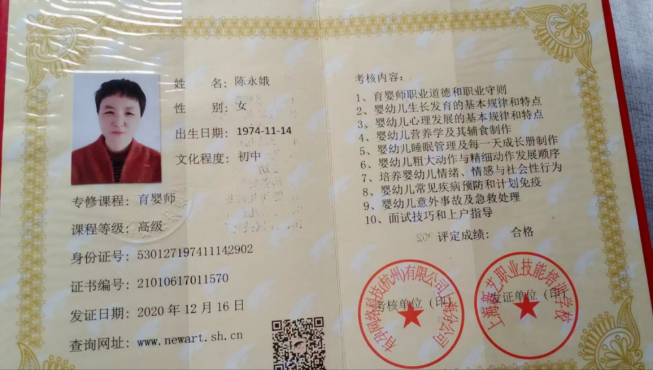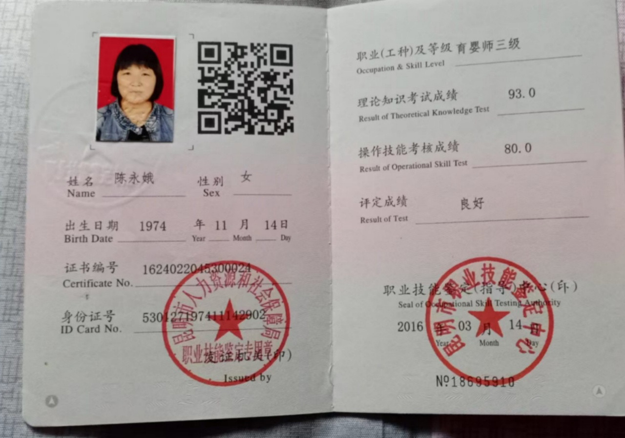 资格证书:劳动局的高级育婴师证,母婴护理师证,高级蒙氏早教证,小儿推拿证