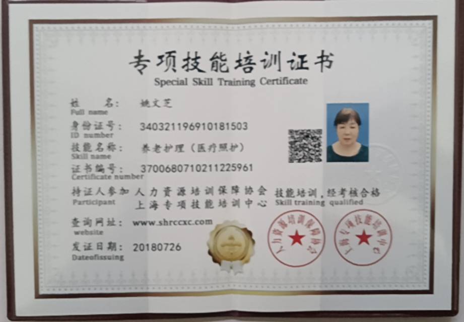 2015年来上海一直做养老护理的工作