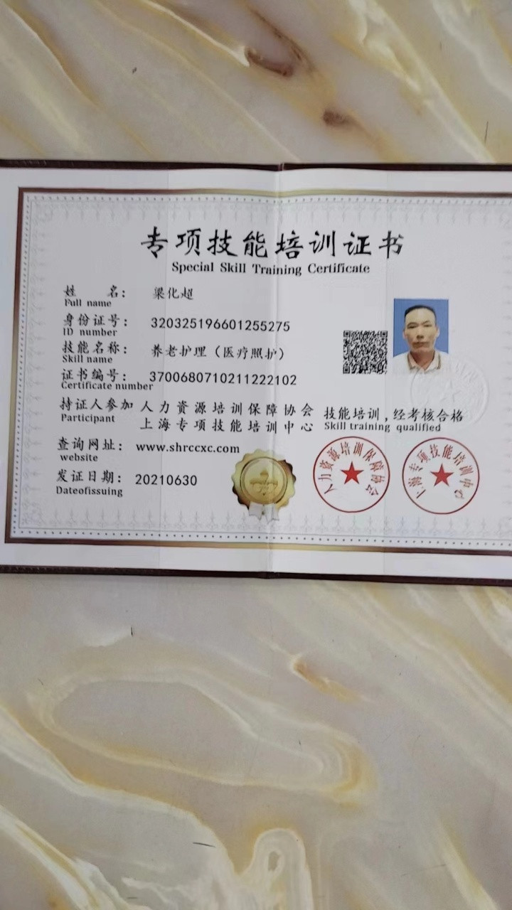 2021年,又去上海南翔古倚兰路,男老人是中风偏瘫,协住老人每天康复段练2次,上午,下午,提醒老人吃药,打以岛素,帮老人座帮老人处理大小便