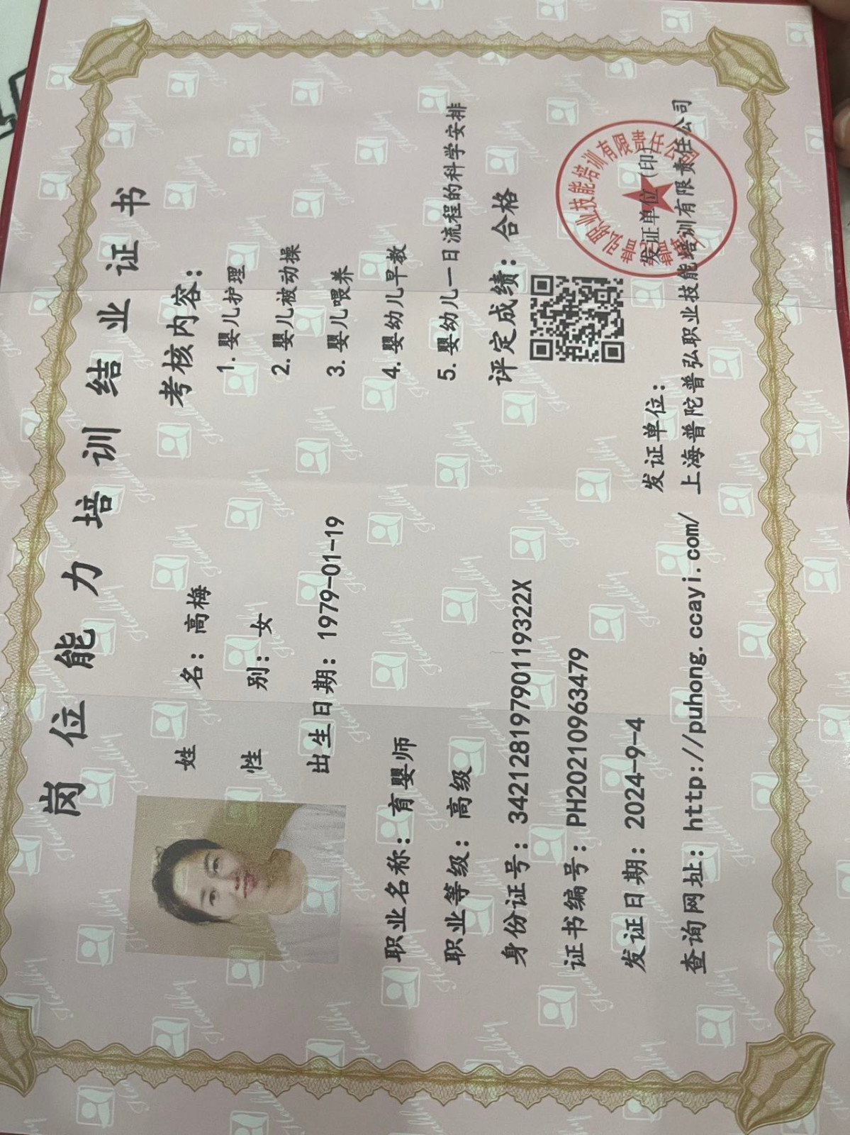 2007至2015期间在安徽阜阳带过2个女宝