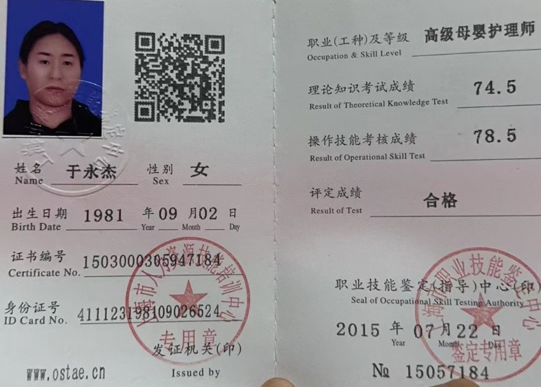 专业证书:育婴师,驾驶证