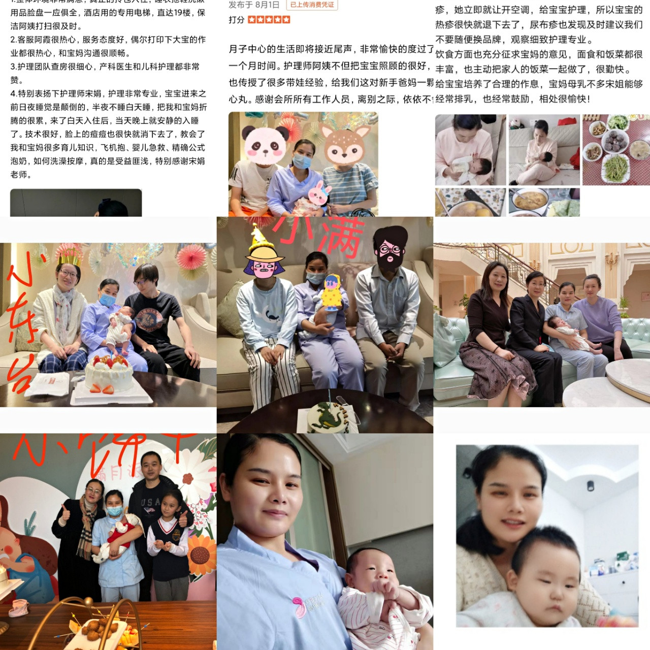 精心呵护每一位宝宝和宝妈!希望每个宝宝都像天使一样健康快乐成长!每个宝妈都能度过一个轻松愉快的月子期!我相信相识是缘,在我们的相处下您和宝宝一定能做到科学育儿,健康成长,赢在起跑线上