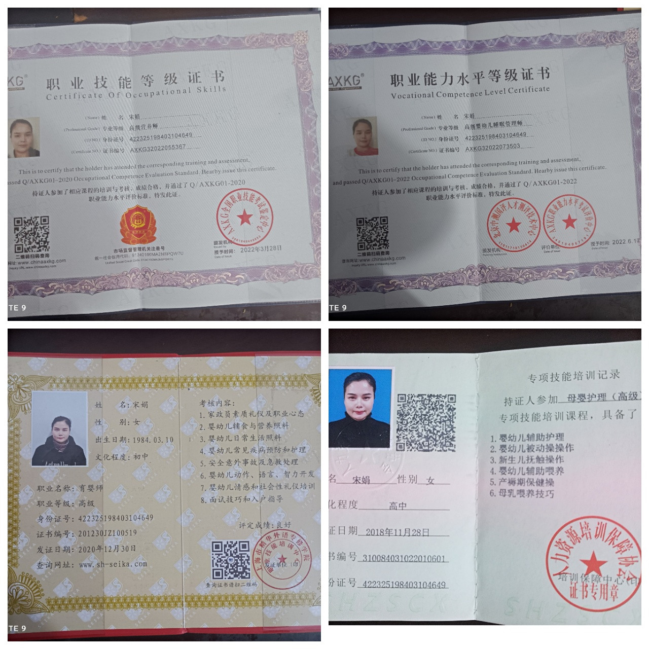 高级母婴护理师证、高级育婴师证、高级营养师证,高级婴幼儿睡眠管理师证、职业催乳师证
