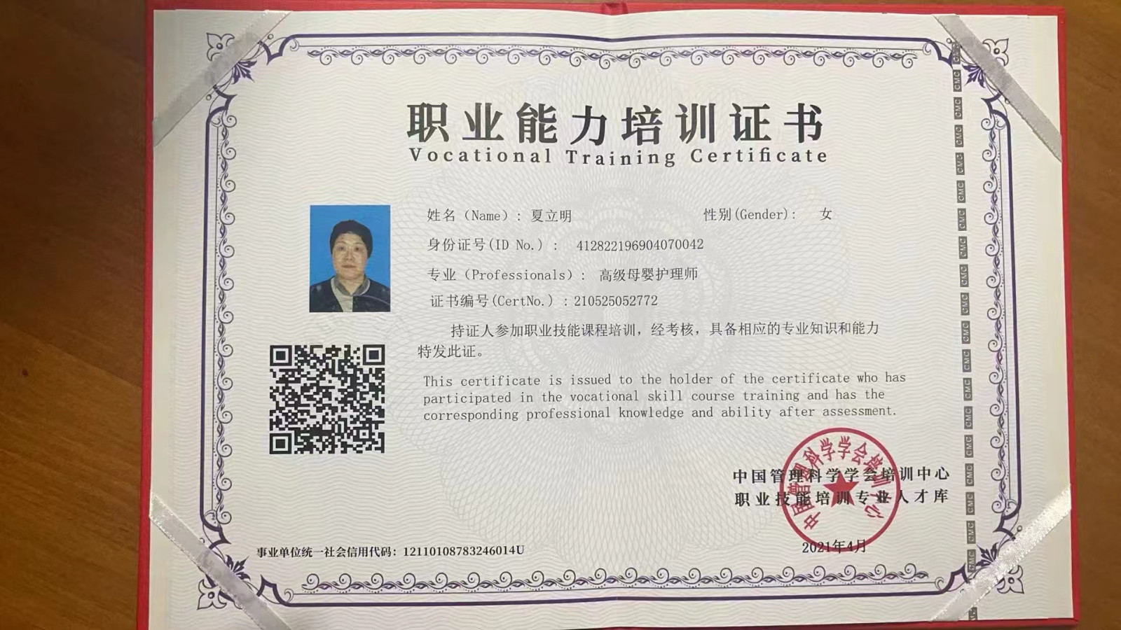 证书:高级育婴师证书