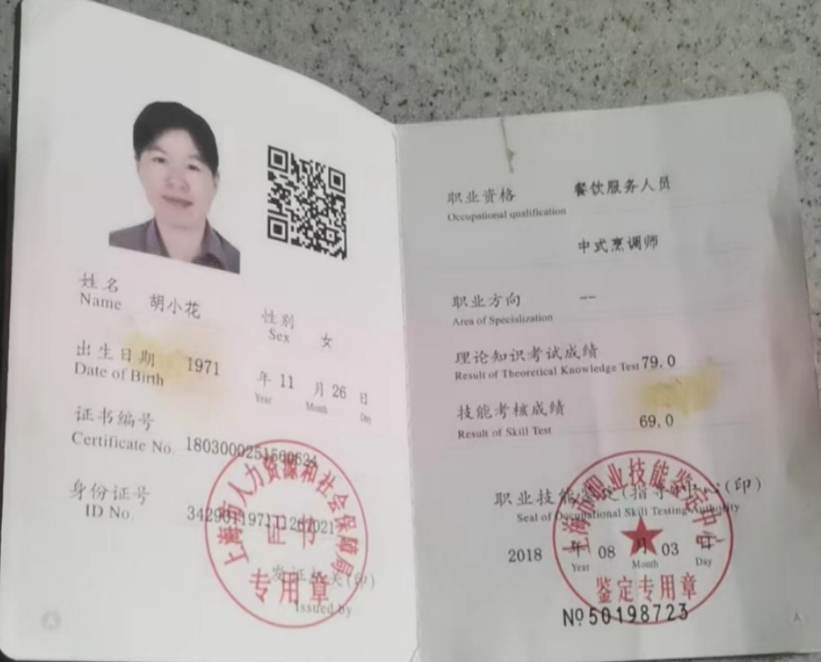 姓名:胡小花 籍贯:安徽【上海媳妇】 出生年月:1971.11.26 身高:165cm 体重:65kg 文化程度:初中 工作经历: 在上海从事家政服务工作多年,做饭保洁家务,带过小宝,0岁带到2岁,也在幼儿园烧过饭。雇主有上海人,台湾人,浙江人等