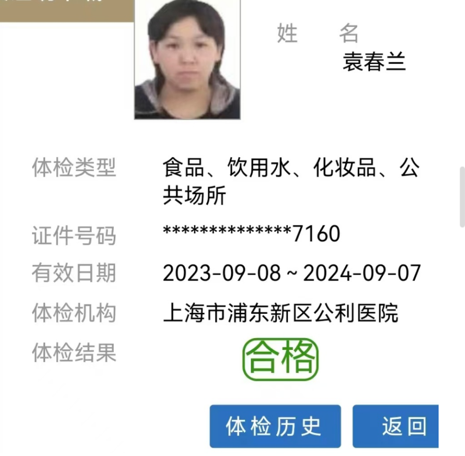 姓名:袁春兰 户籍:江苏 年龄:52岁 学历:初中 身高:164 体重:118 工作经验: 2010年—2017年酒店叫温德姆酒店,客服保洁,做了7年多 2018年至今一直从事钟点工。 做过以下几个小区:碧云别墅700弄,碧云花园二期,红枫路300弄,仁恒河滨城,丁香路上的,云间绿大地。 阿姨擅长保洁熨烫收纳做饭,性格温和做事仔细,为人实在