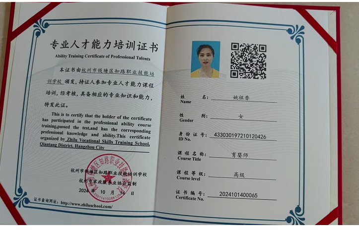 证书:健康证,育婴师证,护工证