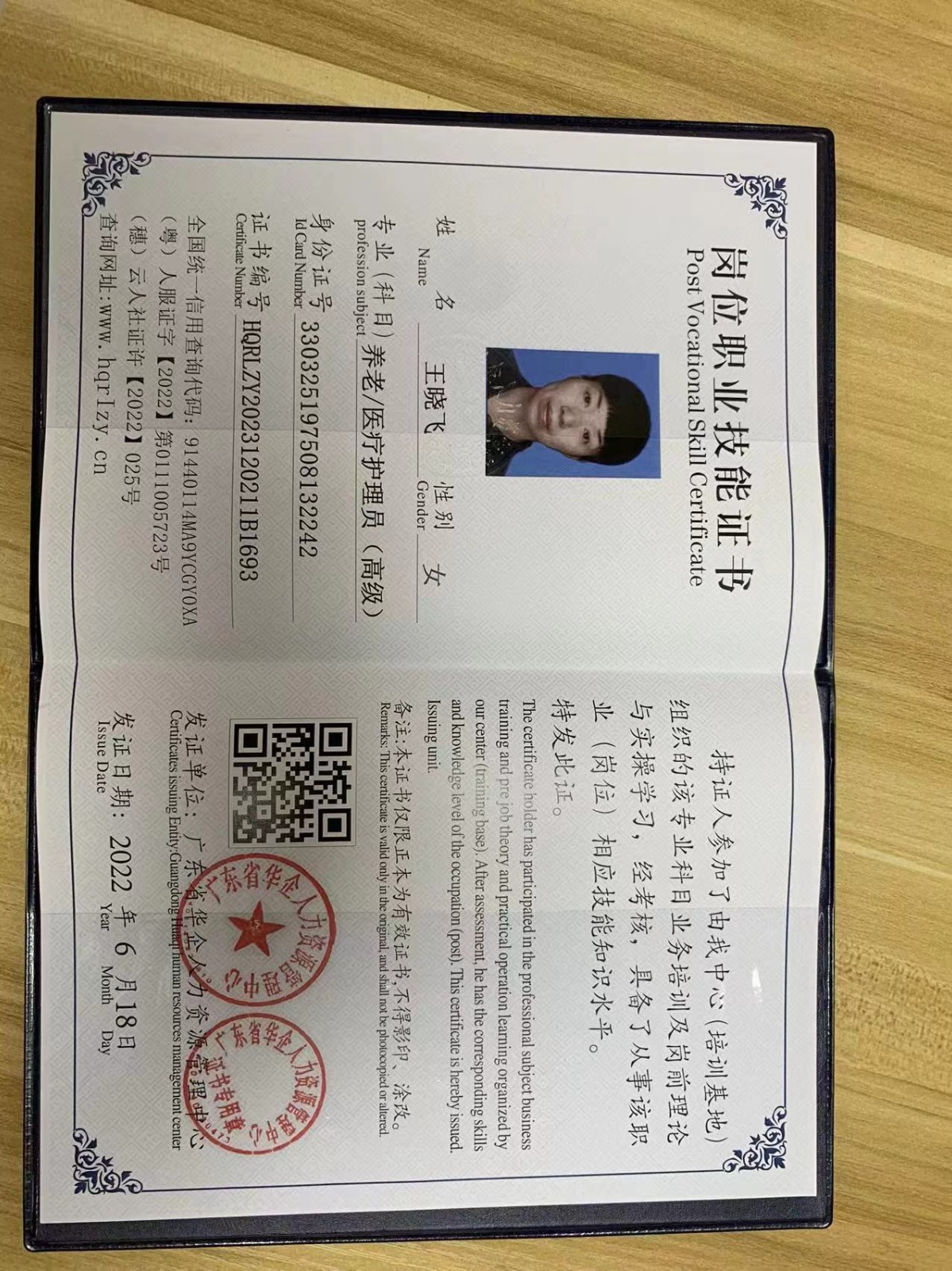 【证书】:高级养老护理证