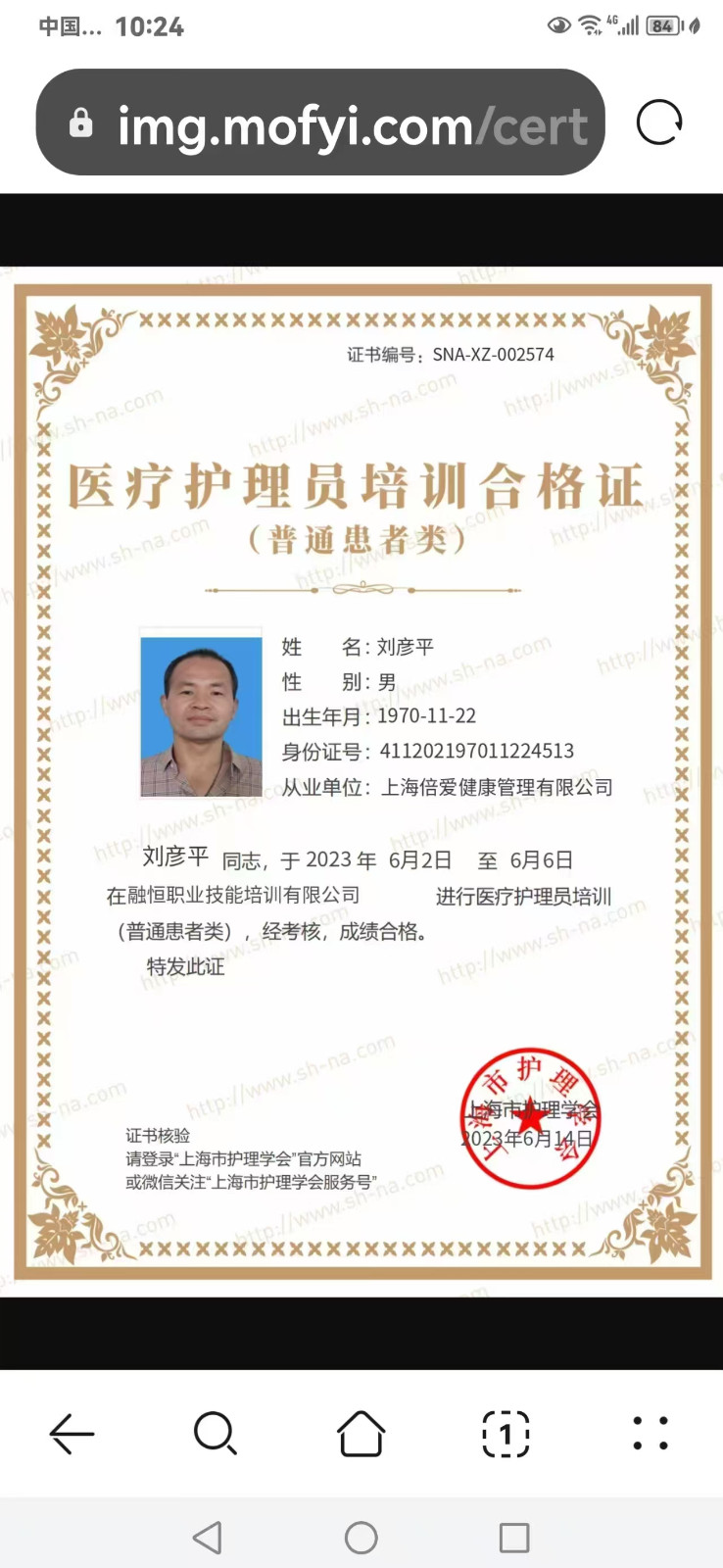 姓名:刘彦平 性别:男 年龄:54 身份证:411202197011224513 工作经验. 10年,2018 年到2020中心医院 工作经验照顾不能够自理男老人,2015到2019在闵行区医院护理工老人有脑梗老人帮忙老人洗澡喂饭 .2019~2024 年到蓝十字脑科康复医院做护理 工作,2025年在上海市闵行区中心医院,长宁区905医院青浦区医大医院肾病科护理。工作经验丰富,可以稳定性上班