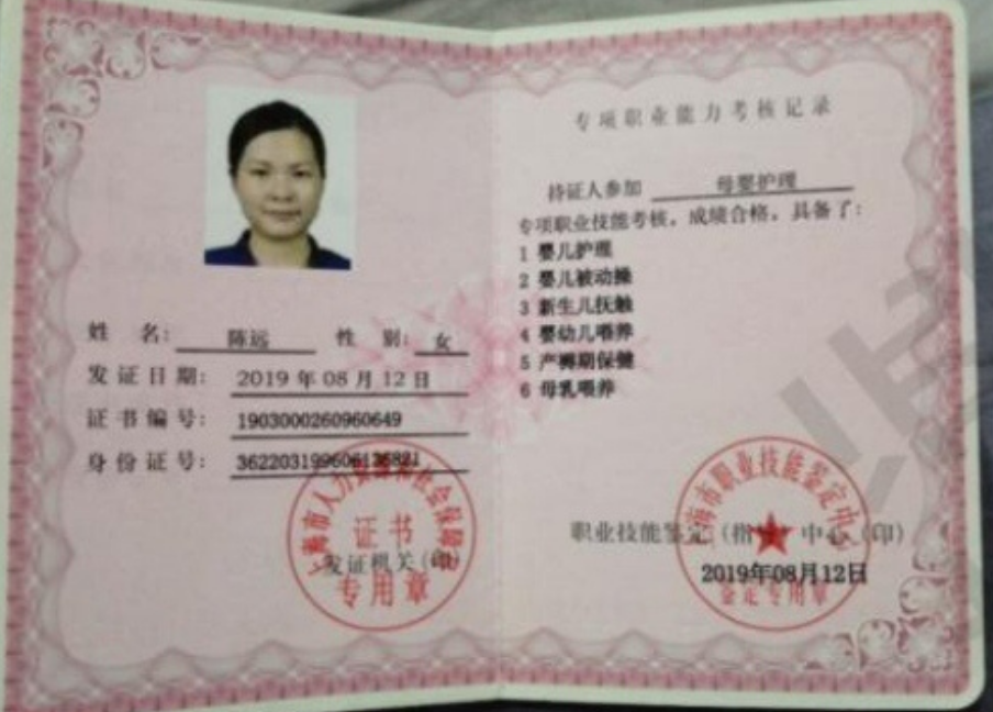 2020-2021年,在嘉兴月子中心做月嫂