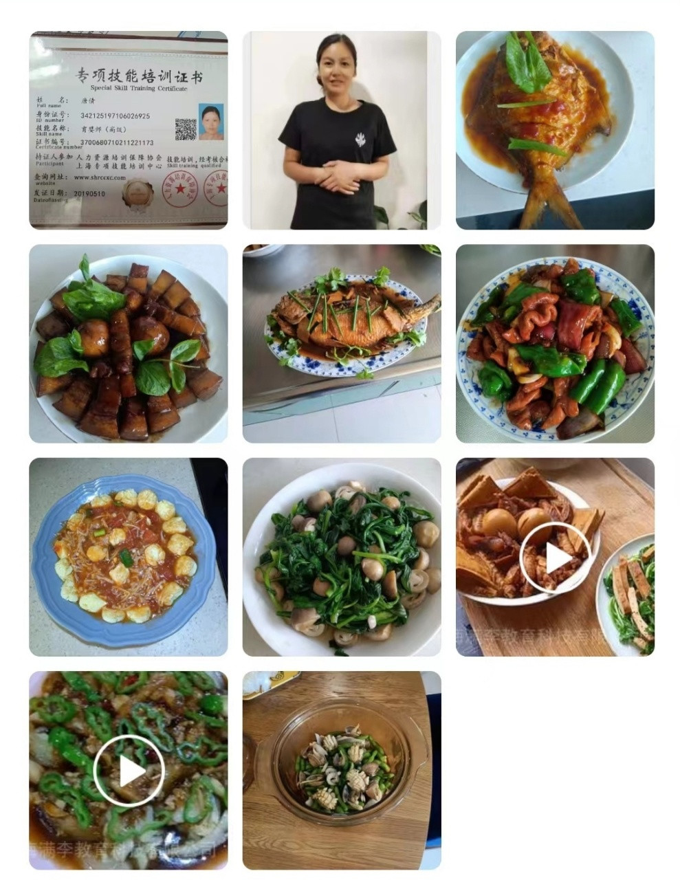 2. 本人有超过20年的雇主家烧饭经验,上海本地菜、安徽菜、浙江菜等菜系非常拿手,味道和摆盘深受雇主们的称赞