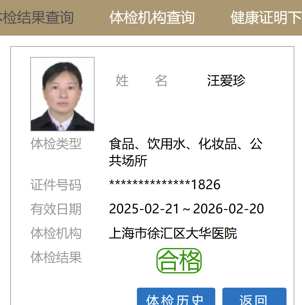 证 件:身份证、健康证和上岗证