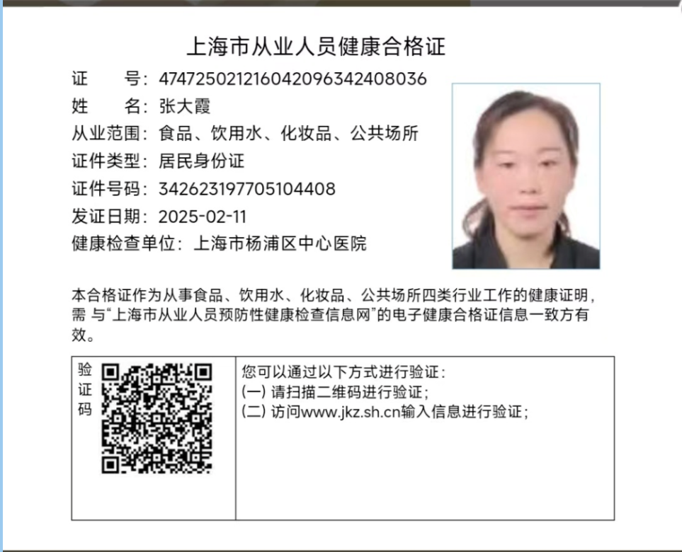 姓名:张阿姨 籍贯:皖 年龄:48岁 身高:160 体重:58 家庭情况良好 专业技能擅长厨艺:烧饭 2018一2020年在上海杨浦区打虎山路,一家五口200平方,主要烧饭,保洁整理收纳 2021一2023年,在杨浦区四川北路,客户一家三口,烧饭,保洁,打扫卫生 2024一2025年,在杨浦区赤峰路,客户一家三口,100平方,收份保洁整理收纳,接小朋友放学 般家上海常菜都会烧,红烧清蒸煲汤爆炒都没问题, 自我评价 性格开朗,做事麻利,眼里有活,做事有条理