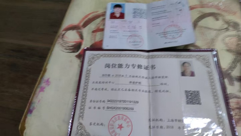 证书:高级养老;护理证;