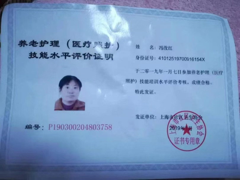 2017—2019在浦东高行,住家照顾一个男老人,半自理,烧饭保洁,陪老人去医院,按摩推拿等。