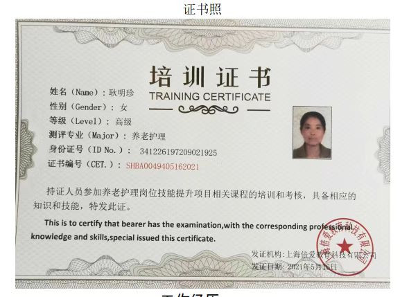 姓名:耿明珍 性别:女 年龄:51 籍贯:安微 民族:汉 身高:157 语言:普通话 现住城市:上海 学历:初中 工作经历:阿姨从2015年开始做护理,阿姨在上海经过养老老业培训,生活护理,慢性病护理,术后护理,康复护理都可以,先后在上海各大医院,护理院照顾老人,护理过的病人不计其数,有能自理的,不能自理的给病人擦身,翻身,床上处理大小便,为病人吸痰,打胃管,测血糖,打胰岛素,护理压疮等,是公司的老护工,能吃苦耐劳,是公司优秀的护理员